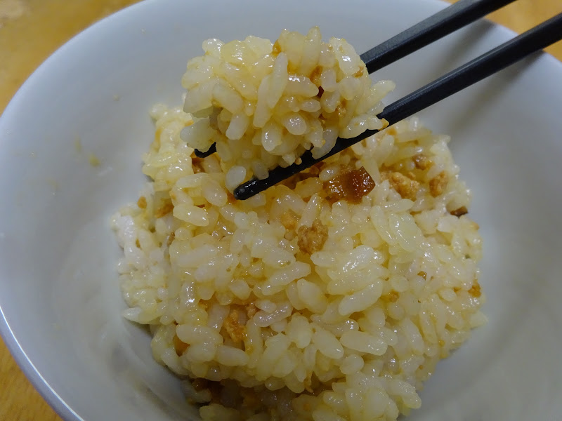 以上、キッコーマンうちのごはん鶏そぼろ甘辛しょうゆ味はアツアツご飯にサッと混ぜるだけで炊き込みごはんのような仕上がり、でした。